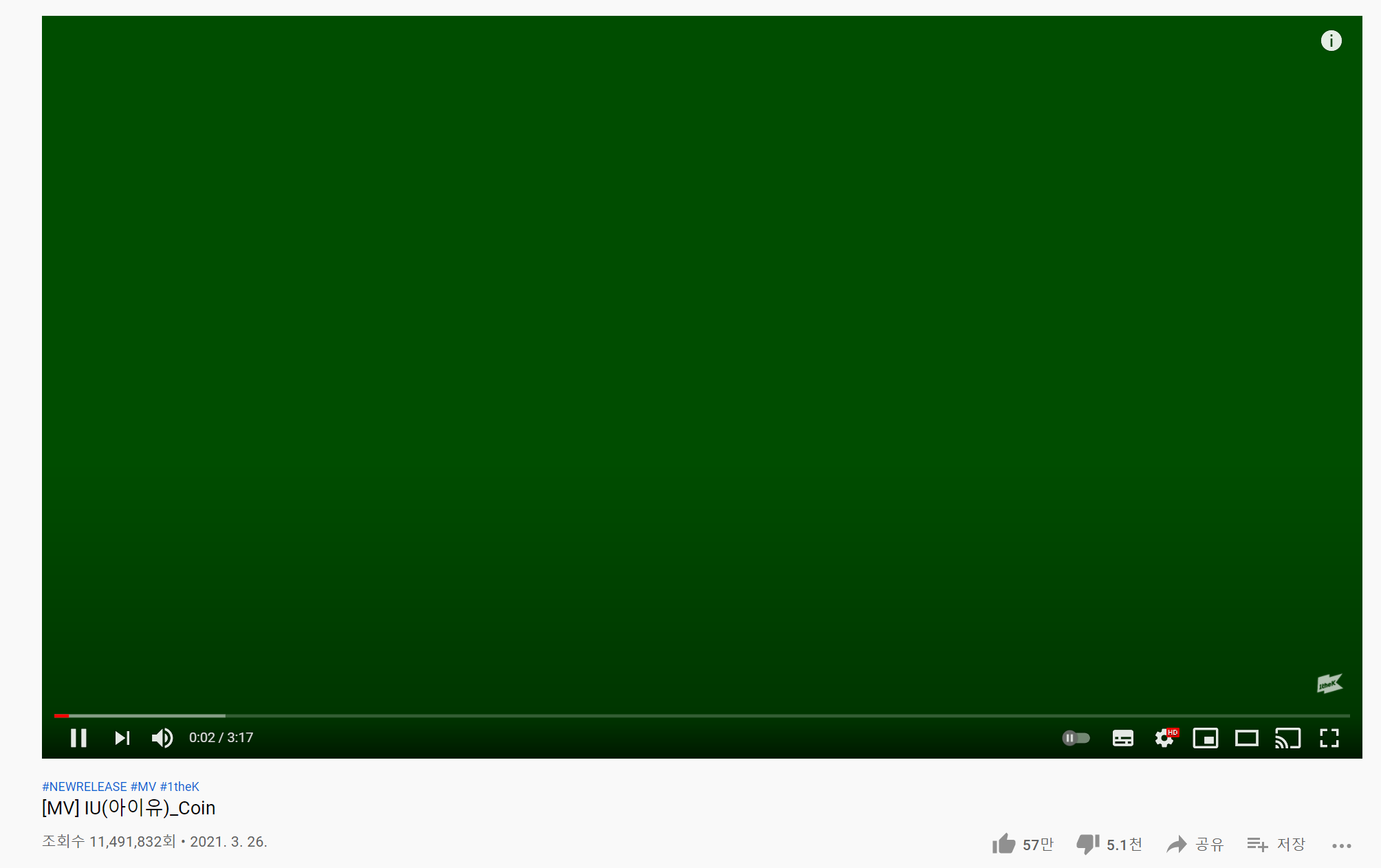 해당 현상이 발생하면 모든 동영상이 초록색으로 보이고 소리만 들린다.