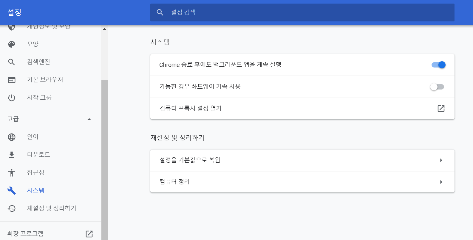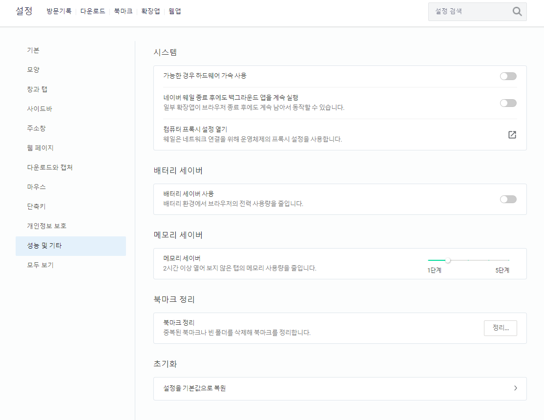 아니면 특정 브라우저만 가속기능을 키고 영상을 볼땐 해당 브라우저를 사용하는 방법도있다.