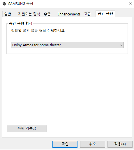 PC에서도 모든 소리에서 돌비모드가 아래와 같이 설정하면 가능한데