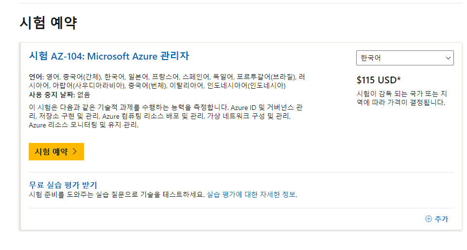 위 링크가 AZ-104 응시 링크이다 시험명이 바뀐다면 해당 자격증 명을 구글링하면 바로 나온다.