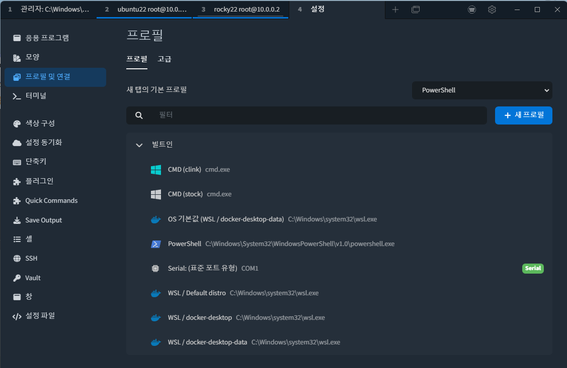 cmd나 powershell ubuntu(wsl) 등으로 설정가능하다.