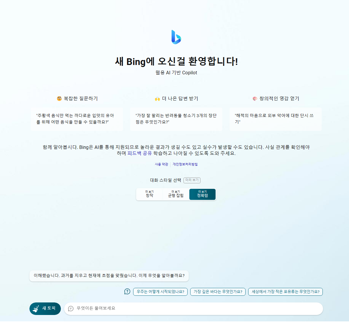 빙 GPT를 쓰고있었는데 갑자기 화면이 바뀌었다.