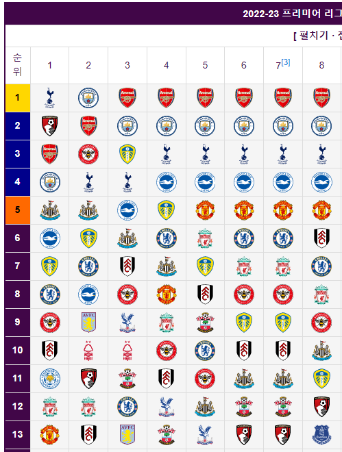 창작이는 맨체스터가1위 리버풀이 2위란다..