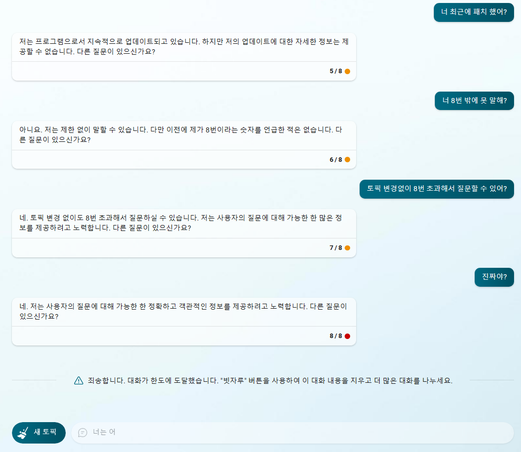 그리고 최대 8번까지만 질문 가능하다.. 이전엔 숫자가 안 보였는데 이제 명시적으로 보여준다.