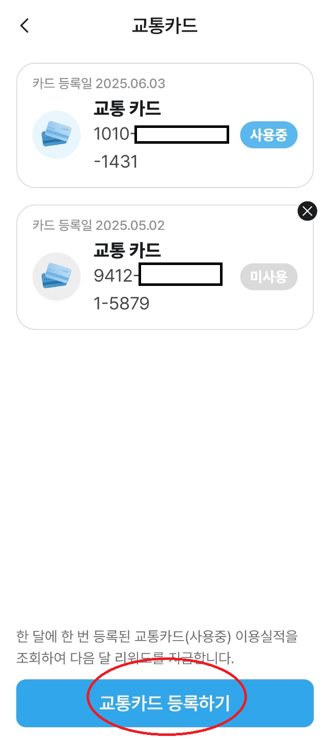 다음 교통카드를 활용하여 리워드를 적립하는 방법입니다.