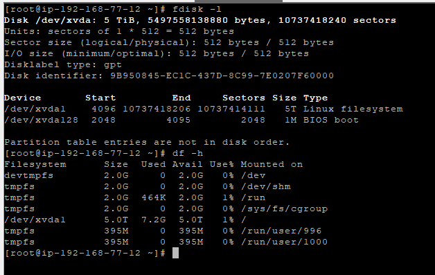 처음에는 용량 문제는 없었지만 추후 성능 및 용량증가를 위해 디스크 확장 요청을 하였는데