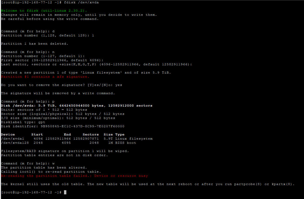 그 후 resizepart 1로 확장을 시도해봤지만 마운트중인 상태라 실패하였다