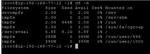 볼륨 크기 조정 후 Linux 파일 시스템 확장 EBS 볼륨 크기를 늘리고 난 후에는 파일 시스템 관련 명령을 사용하여 파일 시스템의 크기를 늘려야 합니다. 볼륨이 optimizing 상태가 되자마자 파일 시스