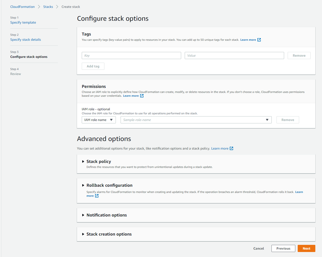 3.CloudFormation의 stack 이름과 해당 파일에서 요구하는 Parameters값을 넣어준다